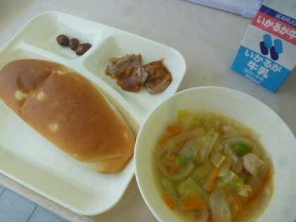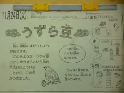 「豚肉のデミグラスソース」は、豚肉にワイン、塩、こしょう、オリーブ油で下味をつけて焼き物機で焼き、リンゴピューレ、デミグラスソース、ウスターソース、ケチャップで作ったソースをからませます。児童に人気のメニューです。