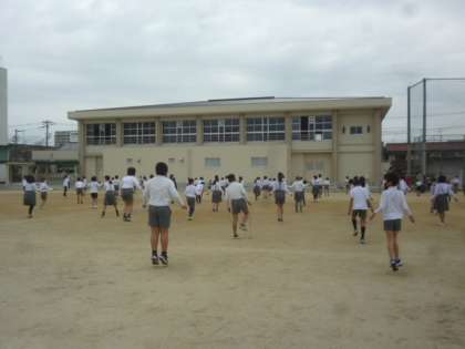 なわとび運動の様子です。今日は2・5年生です。自分のできる跳び方ができるだけ多く跳べように頑張っています。