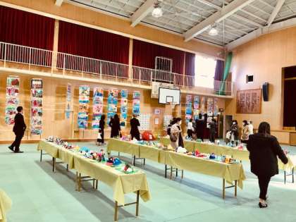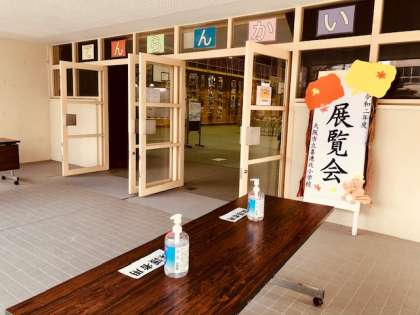 土曜授業です。コロナ禍で授業参観は実施できませんが、講堂で展覧会を開催しています。芸術の秋です。子どもたちの力作がズラリと展示されています。おうちで子どもたちに「頑張っていたね」や「きれいに仕上がっていたね」などの声かけをしてあげてください。