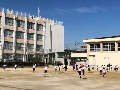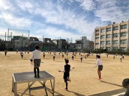 今日の20分休みの「なわとび運動」は1年生・6年生でした。