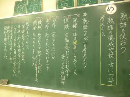 5年生、国語の授業の様子です。熟語の構成や違いについて学習しました。意味の違いについて調べ、自分なりに文を考えて書きました。2つの同じ音の熟語を使って、ダジャレを考えるなど楽しそうに学習に取り組んでいました。