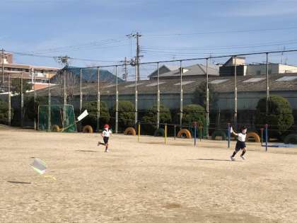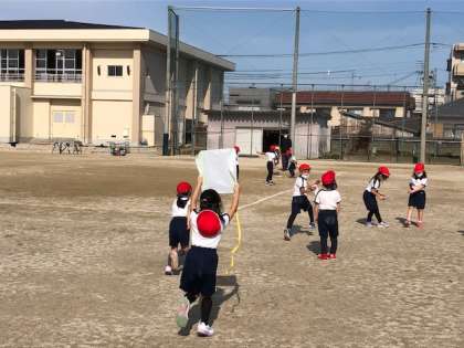 いい天気です。少し暖かいです。たこあげ日和です。1年生がたこあげにチャレンジしています。きちんと持ってあげる子、走る子など協働学習が成立しています。次は風向き、たこのバランスなどに気づくとたこあげ名人になれますよ。