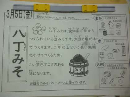 八丁みそは、愛知県で昔からつくられている豆みそです。大豆と塩だけでつくります。二年以上という長い期間ねかせてつくるため、こい茶色でコクのある味になります。