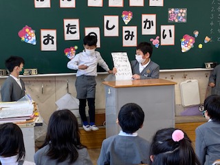 修了式&お楽しみ会の様子です。これまでがんばったことを発表したり、クイズや読み聞かせをしたりして楽しみました。