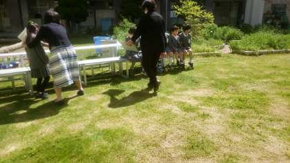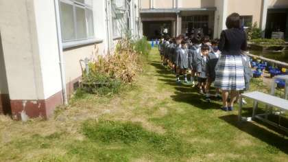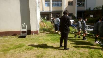 今日は晴天のもと、中庭にて全学年、学級写真撮影を行いました。