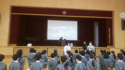 講堂と2〜6年の各教室をTeamsを活用して結び、対面式を行いました。