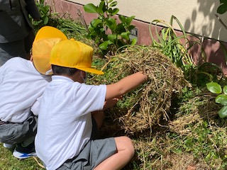 20分休みの様子です。「ジャングルジムにのぼったよ。」「自由帳に絵を描いたよ。先生の顔を描いたよ。」「中庭でダンゴムシを見つけたよ!」等・・・嬉しそうな子どもたちです。