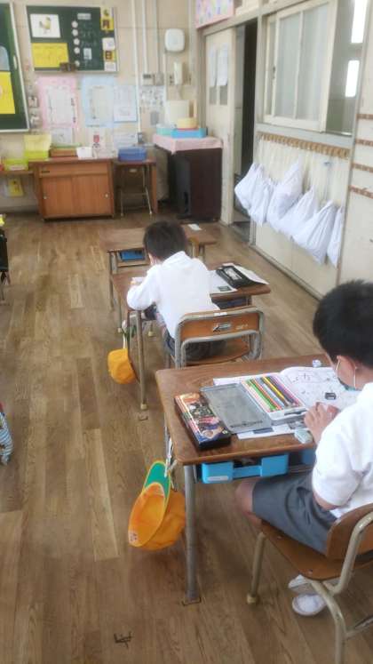 ワークブックを使ってひらがなの練習をしていました。お手本を見て、一画一画丁寧に書いていました。立派立派!