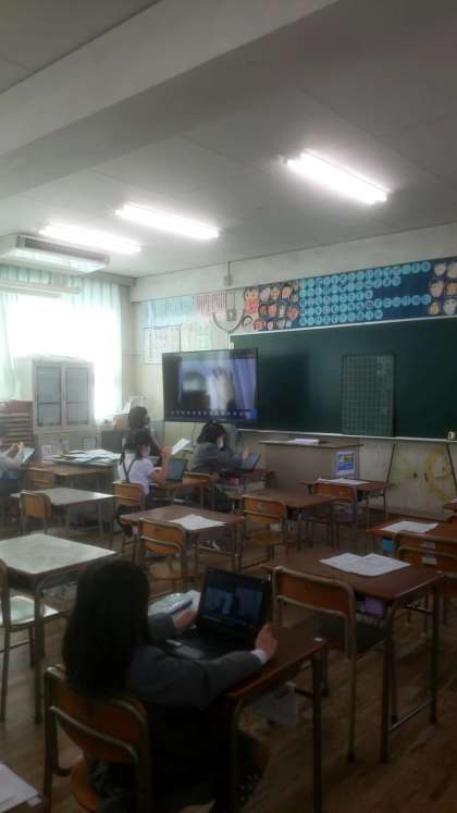 お家にいる友達の声が聞こえたり、顔が見えたりした瞬間、教室で歓声があがりました。