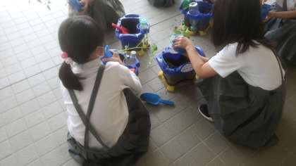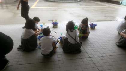 ミニトマトの苗を植えています。これからしっかりとお世話をして大切に育てていきましょう!