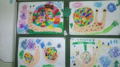 しっかりとパスで塗り込み、色とりどりのカタツムリですね♪