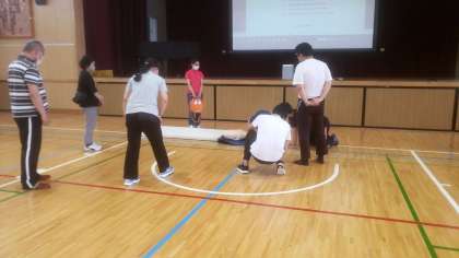水泳指導に備えて救急救命講習会を全教員で行いました。あってはならないことですが、万一に備えて毎年水泳指導前の時期に研修会を行っています。