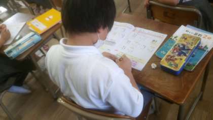 定規を使って長さを測る学習です。正確に長さを測定するには、正しい姿勢で測ることが大切ですね。