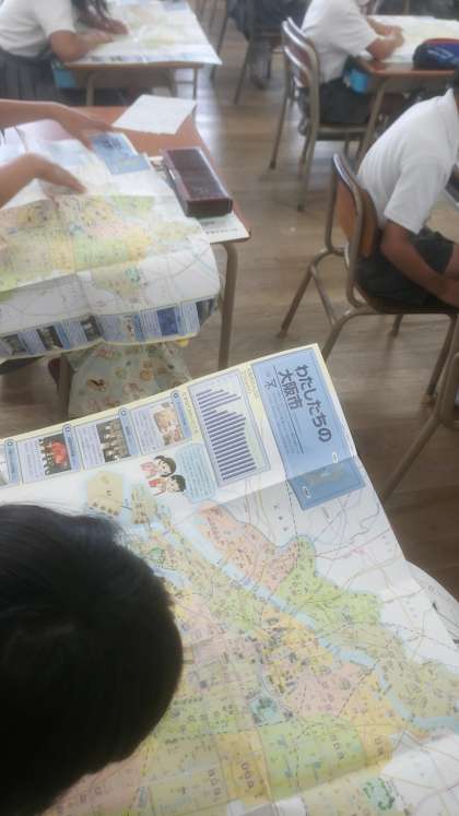 私たちが暮らす大阪市について絵地図を使って調べています。