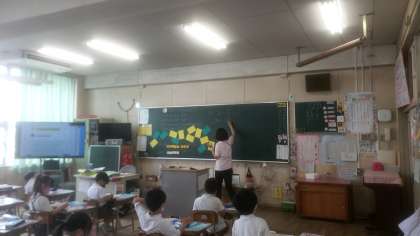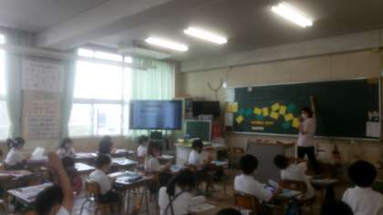 ひき算の学習中です。色画用紙やブロックなど具体物を使ってみんなでやり方を考えています。