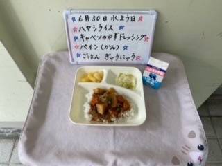 今日は、ラッキーにんじんの日でした。見つけた児童は嬉しそうに食べていました。