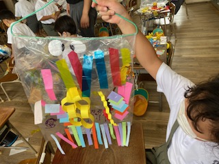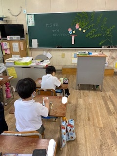 今週は、生活科でみず遊びをします。ペットボトルやマヨネーズなどの容器をご準備いただきありがとうございました!子どもたちは、「みつけたよカード」に水遊びの道具を考えて書きました。晴れますように!