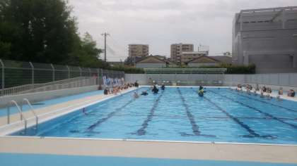 1年生にとって初めての水泳学習。大きなプールに恐る恐るの子供たちもいましたが、これから少しずつ慣れていきましょうね。
