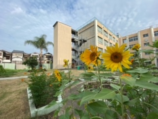 今は大変な時期ですが、ひまわりのように太陽に向かって元気にがんばりましょう!