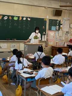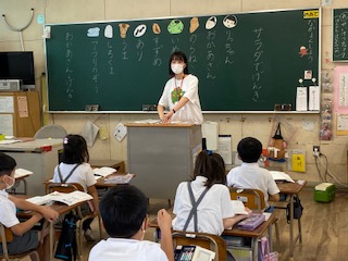 教育実習の先生が初めて国語科の授業を行いました。子どもたちも嬉しそうです。姿勢に気をつけて音読しています。