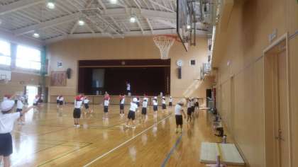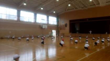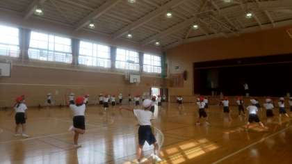 今日は講堂で、運動会の団体演技の練習です。