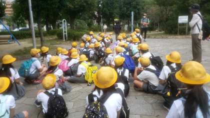 たくさん学習したのでお腹もペコペコ。見学後、近くの公園に移動して、昼食タイムです。