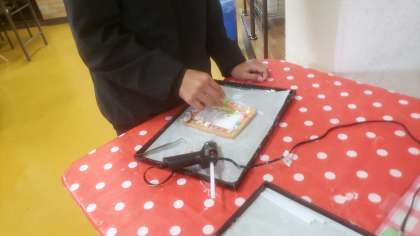 貝殻等を使って飾り付けをしていきます。作品に一人一人の個性が表れています。