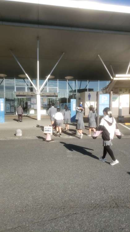 最後の休憩地、針テラスを出発しました。工事渋滞の為、学校まで約1時間程度かかるそうです。