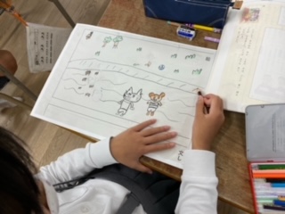 教科書に出てきている登場人物だけで物語を作ったり、新しく登場人物を登場させたりして思い思いの物語が出来ています。