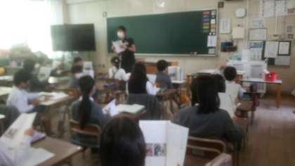 説明文「ビーバーの大工事」の学習です。まずは、みんなで一斉読みをしました。