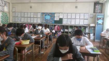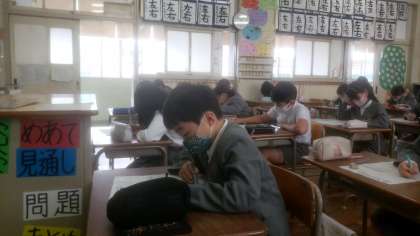 単元のまとめテストに取り組んでいます。集中してテストに取り組む姿はとても立派でした。