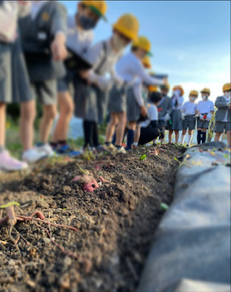先日、夏前に植えたさつまいもを収穫しました。一生懸命育てたサツマイモが大きく育っているのを見て、子どもたちも嬉しそうでした。タブレットで友達が収穫している姿をしっかり捉えられるように写真撮影もしました。
