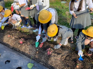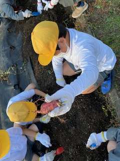 連なって収穫できたり、小さいのが収穫できたりと芋掘りを楽しんでいました。
