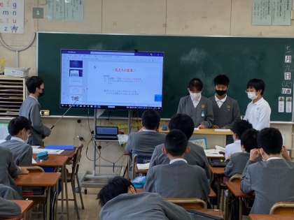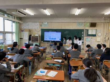 自分たちの町(平野区)の未来について発表しました。発表はパワーポイントで行いました。写真や資料を活用してうまく説明することができ、とてもわかりやすかったです。