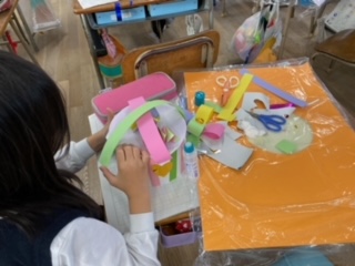 自分で帽子の形を選びさまざまな飾りを作り装飾していっています。