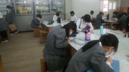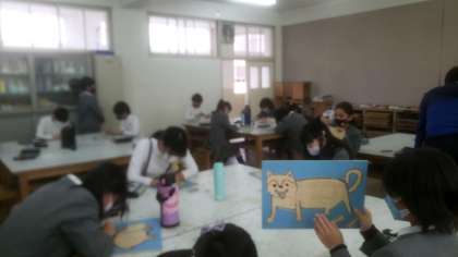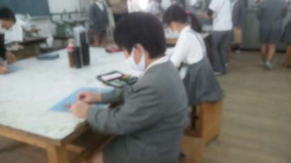 4年生は版画に取り組んでいます。白と黒のバランスがポイントになります。