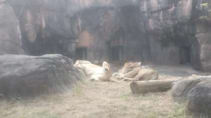 寝そべってお腹を見せるライオンにみんな大爆笑
