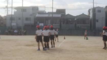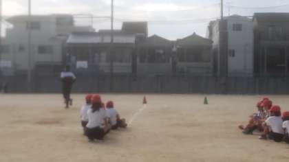 ボール運動の学習です。まずは、ボール運動の基本の一つであるドリブルを行いました。