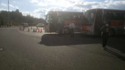 針インターでトイレ休憩終了しました。あと1時間程で学校着予定です。