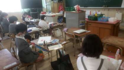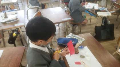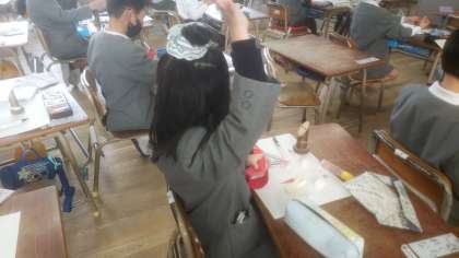 校内にある桜の木に装飾して「サンタクロース」を作っています。