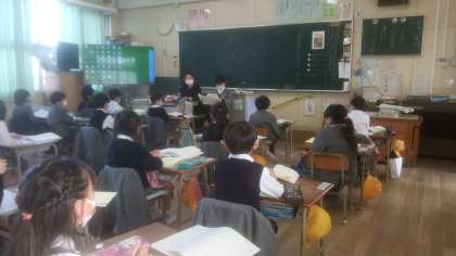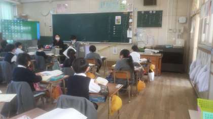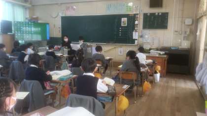 秋の遠足について書いた作文をみんなの前で音読しています。読み終えた後、お友達から自然に沸き起こる拍手がとても素敵でした。