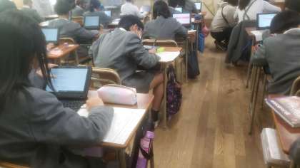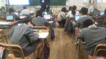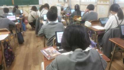 子供達にとってのふるさとである大阪について、タブレットを使って調べています。
