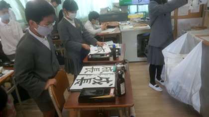 「成長」という比較的画数の多い漢字ですが、お手本をしっかりとみて書いていました。