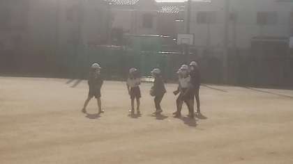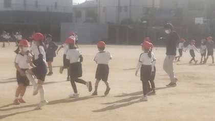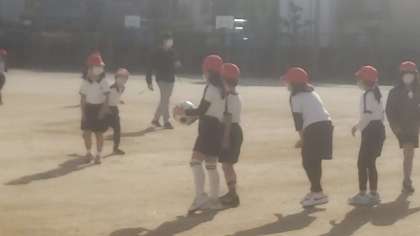 ゲーム型ボール運動に取り組んでいました。ボールをキャッチした友達の後ろに素早く並ぶ等チームワークが求められるゲームですね。
