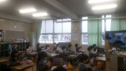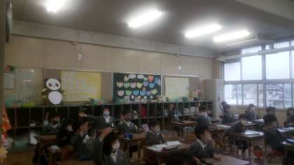 1年生は手話による校歌です。1年生は節目節目の行事で手話による校歌に取り組んでいるので、みんな慣れたものです。
