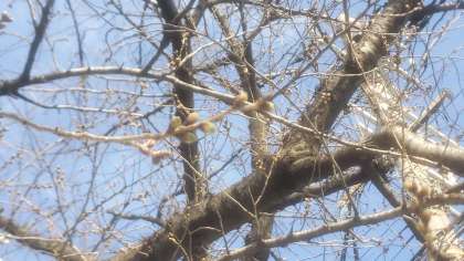 桜の木をよくみると、つぼみが大きくふくらんでいました。春がもうすぐそこまで、やって来ています。