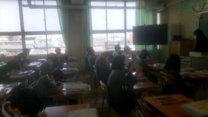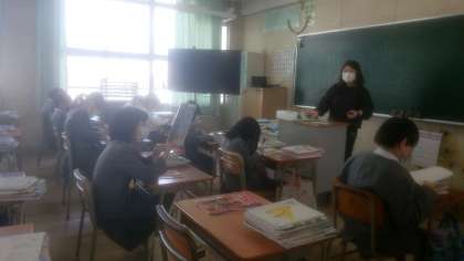 配布された教科書、資料集やドリルに名前を記入しています。1年間使うものなので、心を込めて丁寧に書きました。
