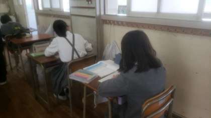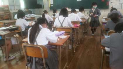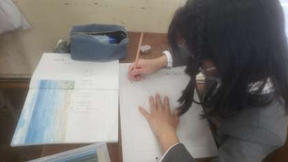 「水平線」という詩を視写しています。背筋を伸ばして、良い姿勢で書いていましたね。