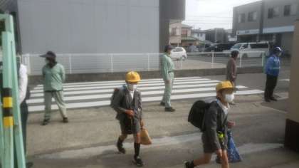 今週から、地域交通安全週間が始まりました。それに併せて、喜連北連合町会長様はじめ地域の皆様方や警察、区役所の方々が子どもたちの登校の様子を見守って頂きました。