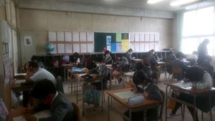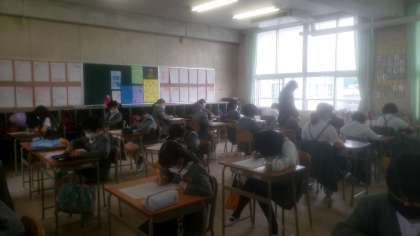 5年生になって初めての算数テストです。みんな、実力を発揮しようと、張り切って取り組んでいました。